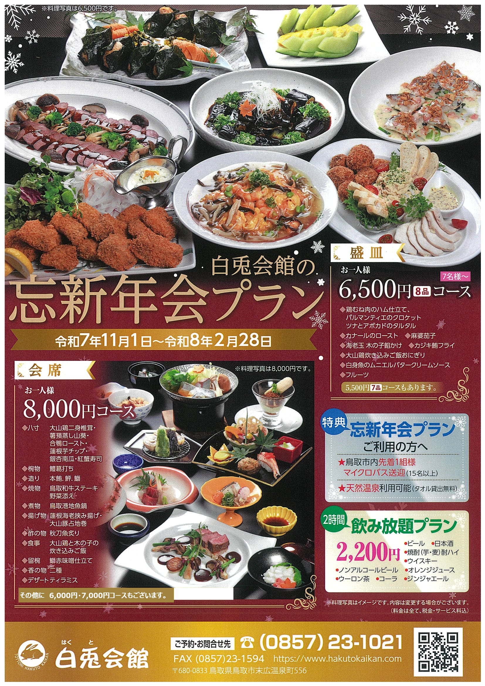 【忘新年会プランのご案内】 一年の締めくくりの忘年会・新年の幕開けのお祝いでぜひご利用ください。